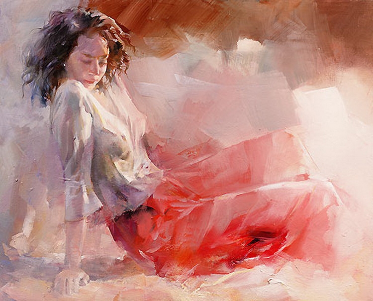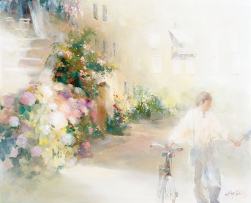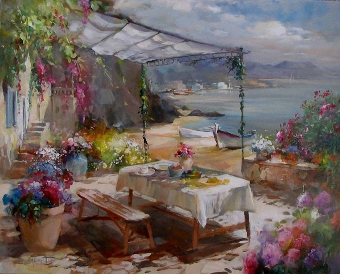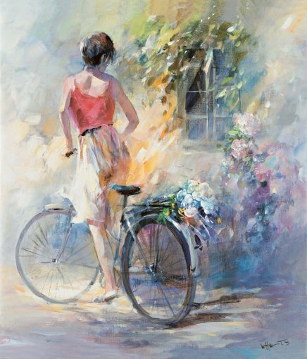 Глядя на его картины, ловишь себя на мысли, что хочется отбросить все дела, сесть на велосипед, надеть соломенную шляпку, взять в охапку букет полевых цветов и умчаться куда-нибудь к морю… забраться на утёс и подставить лицо тёплому ветру.