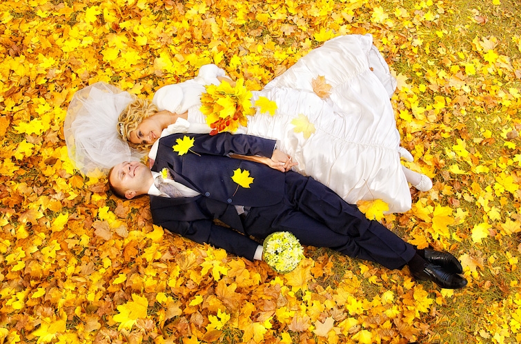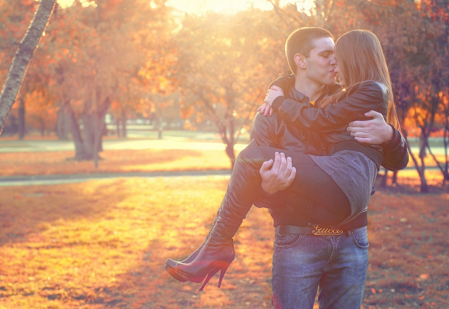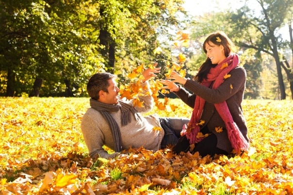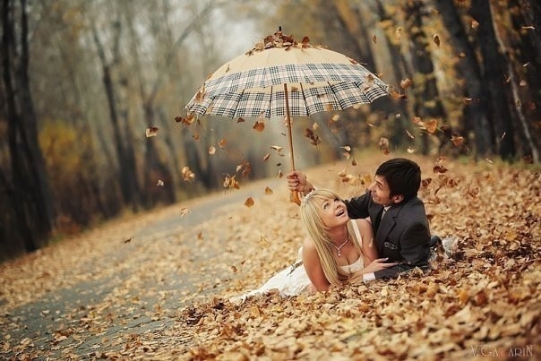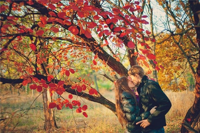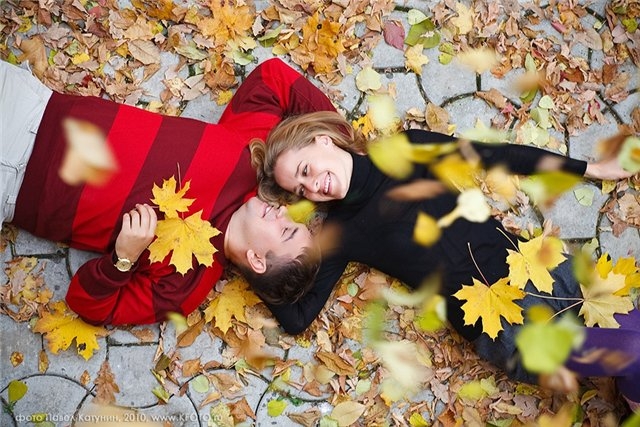 Золотая осень. Красные, желтые и оранжевые листья опускаются на землю, превращаясь в пестрый ковер. Прикоснитесь к ее величественной красоте, рассматривая лучшие осенние фотографии с влюбленными парами.