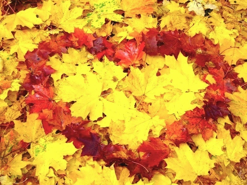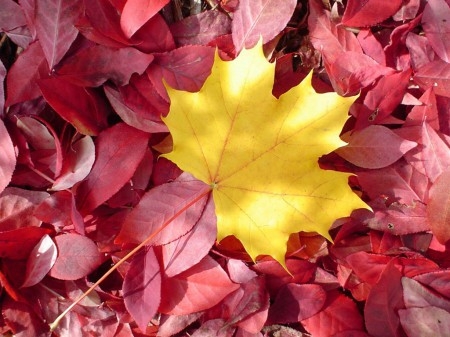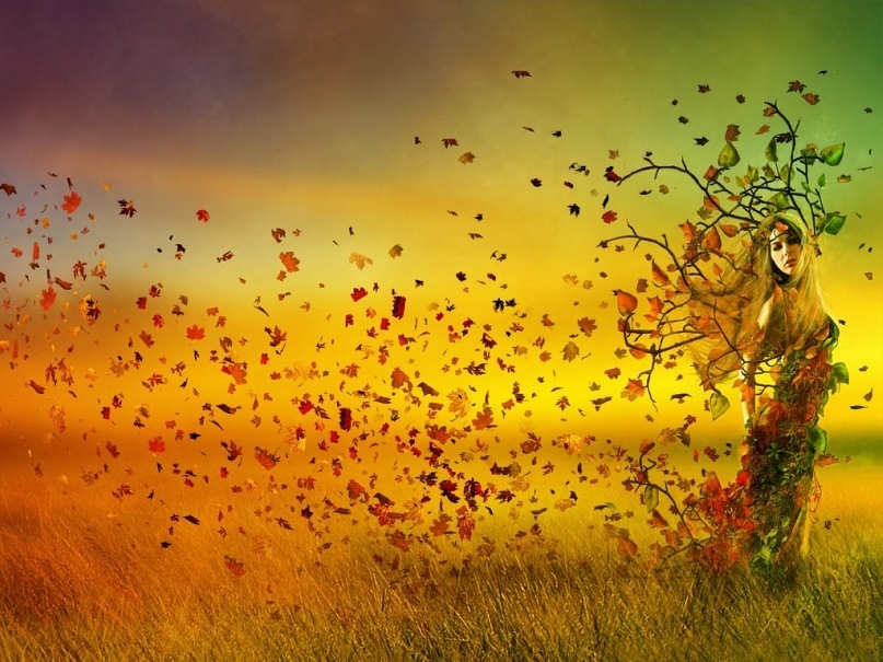 Осенняя природа показывает свою многогранную палитру. Зеленей, красный и желтый цвета трав и кустарников превращаются в яркую радугу.