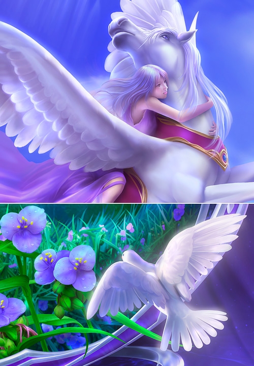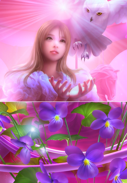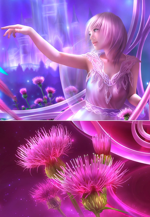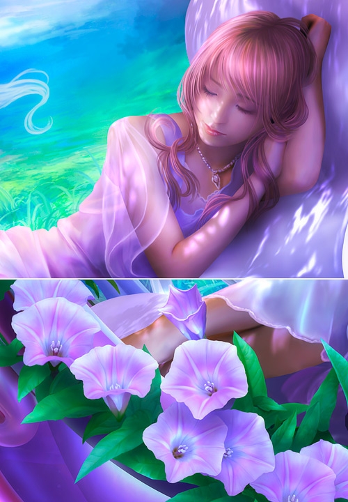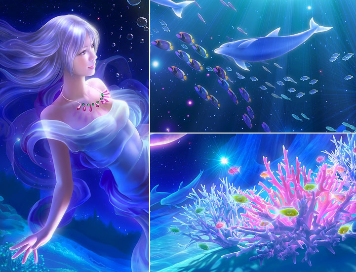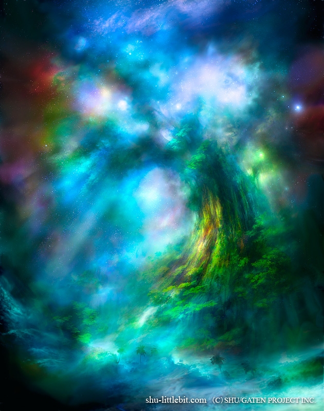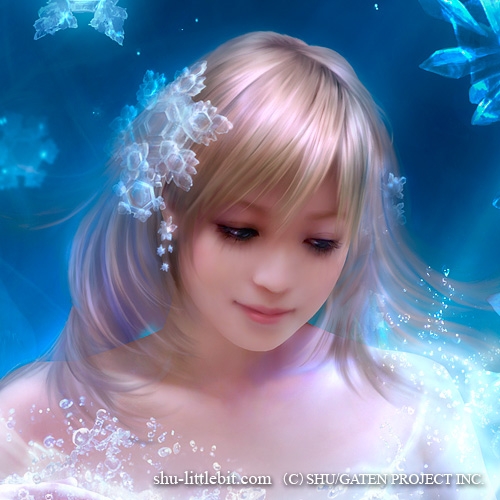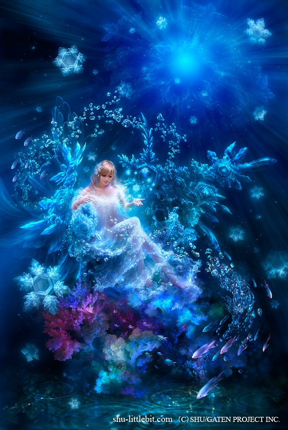 Славный продолжатель цифрового дела Кагайи, Шу Мизогучи, тем не менее, вполне своеобразен. Сочные хрустальные краски, но уже не эксплуатация голубого, как у Кагайи, а сочетание всех цветов радуги.