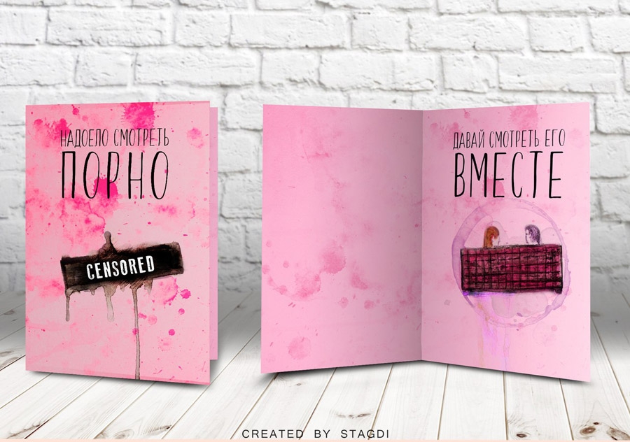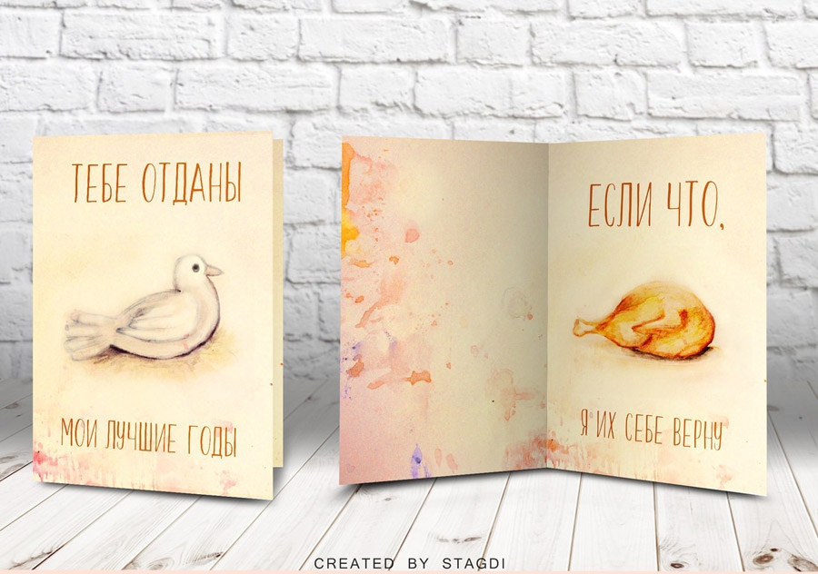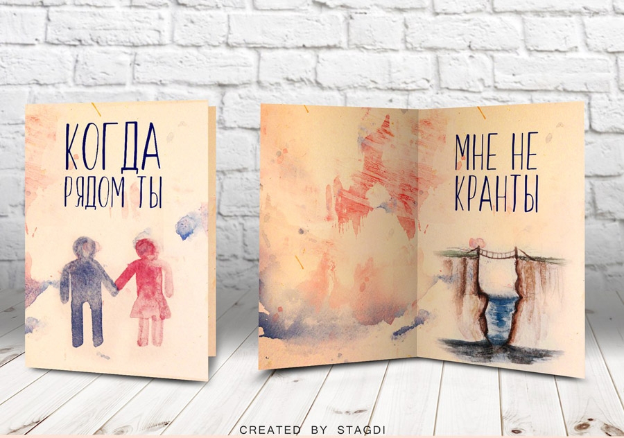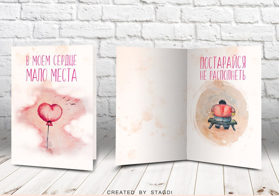 Пока Амур точит стрелы и натягивает тетиву, дизайнеры студии «СтАгДи» решили подкормить вас новыми крутыми открытками, написанными полностью акварелью и фотошопом. Поэтому если у вас есть вторая половинка (ну мало ли, с кем не бывает), то скорее дарите им эти валентинки.