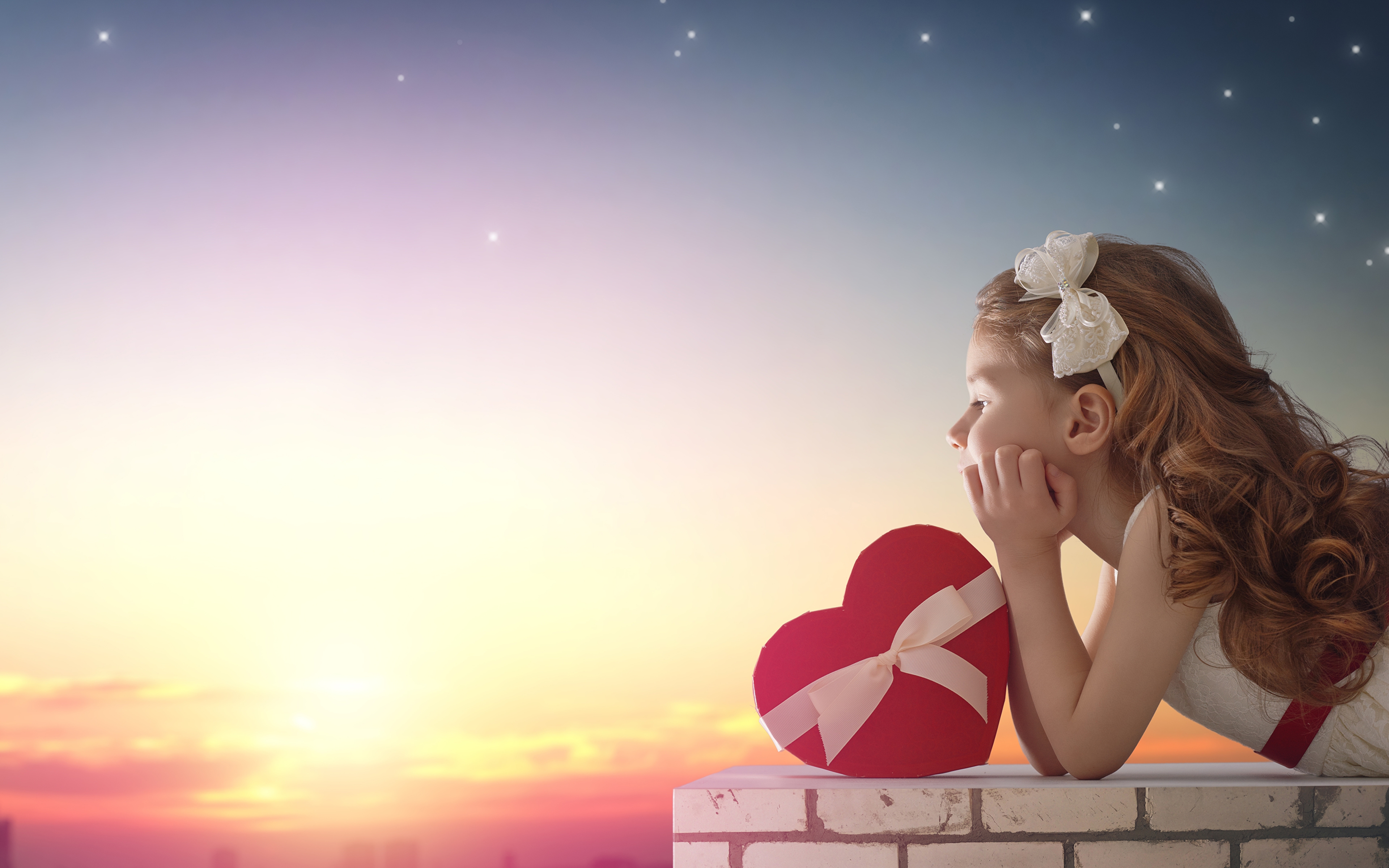 Девочка с сердцем на закате